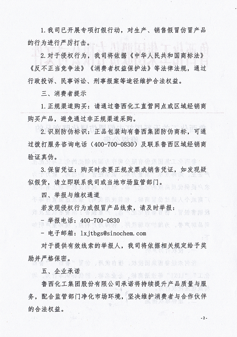 魯西化工關於嚴厲打擊假冒仿冒化肥產品的維權公告