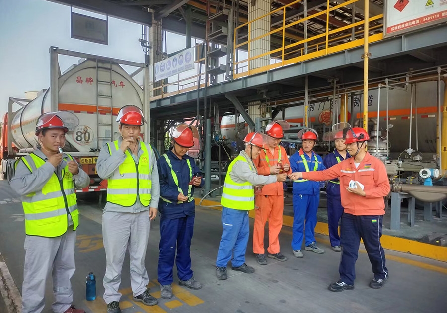 此外,為(wei) 做好室外作業(ye) 人員防暑工作,第三工程事業(ye) 部、第四工程事業(ye) 部、灌裝站針對高溫炎熱天氣紛紛開展“夏日送清涼”活動。第三工程事業(ye) 部黨(dang) 支部分別在甲烷氯化物、有機矽事業(ye) 部現場設置應急聯絡點,安排專(zhuan) 人值班,配備對講機便於(yu) 聯絡,聯絡點放置血壓計、測溫槍、綠豆湯、以及藿香正氣液、風油精等防暑降溫藥品,作業(ye) 前值班人員首先對作業(ye) 人員的體(ti) 溫、血壓等情況進行測量,建立台賬,以便於(yu) 對員工身體(ti) 異常情況及時掌握。第四工程事業(ye) 部、灌裝站黨(dang) 支部則分別為(wei) 室外員工和外來司機送去純淨水、藿香正氣液、淡鹽水等防暑物品,表示慰問的同時積極聽取大家的困難和建議,把關(guan) 心和清涼送入現場,送入人心。